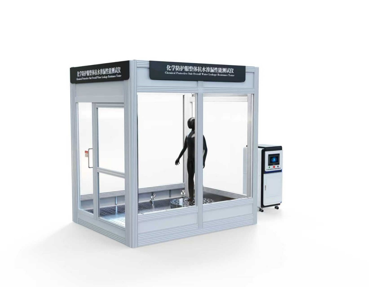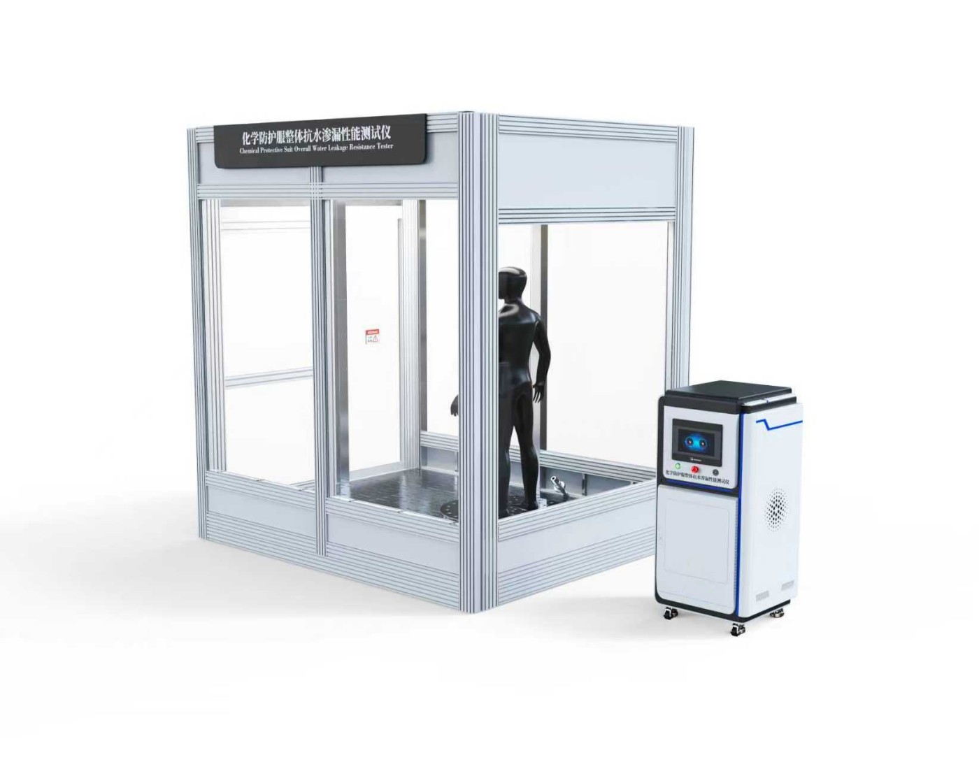 化學防護fu裝整體抗水滲漏性能午夜福利视屏是用於評估防護fu在模擬實際工作環境(如化工、醫療、核工業等)中,抵抗液態化學品或水滲透能力的專用設備。